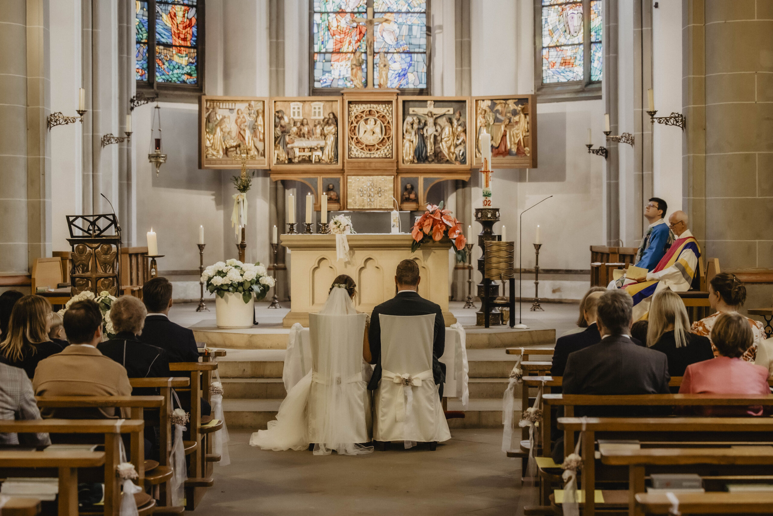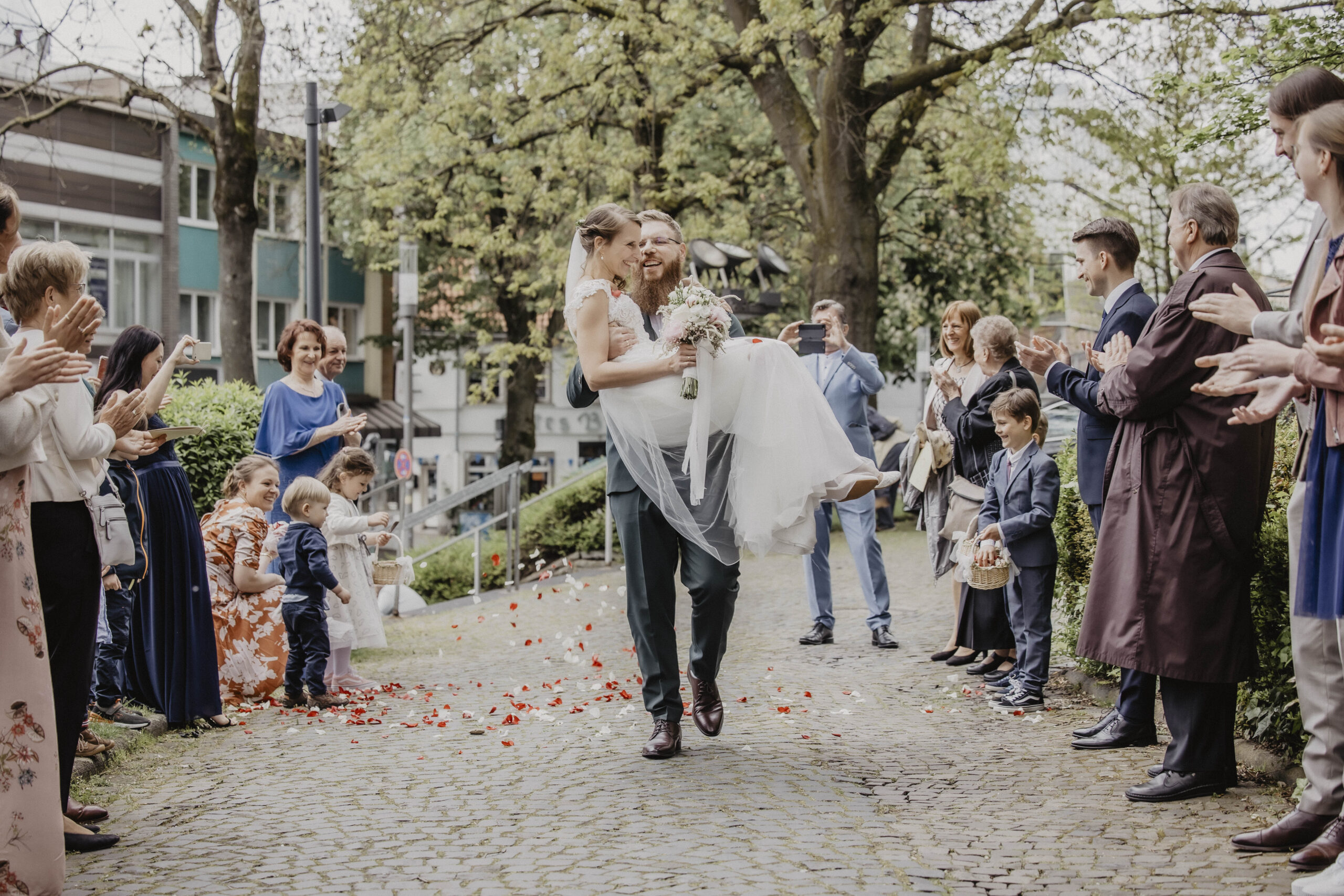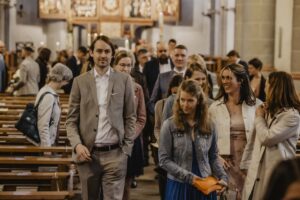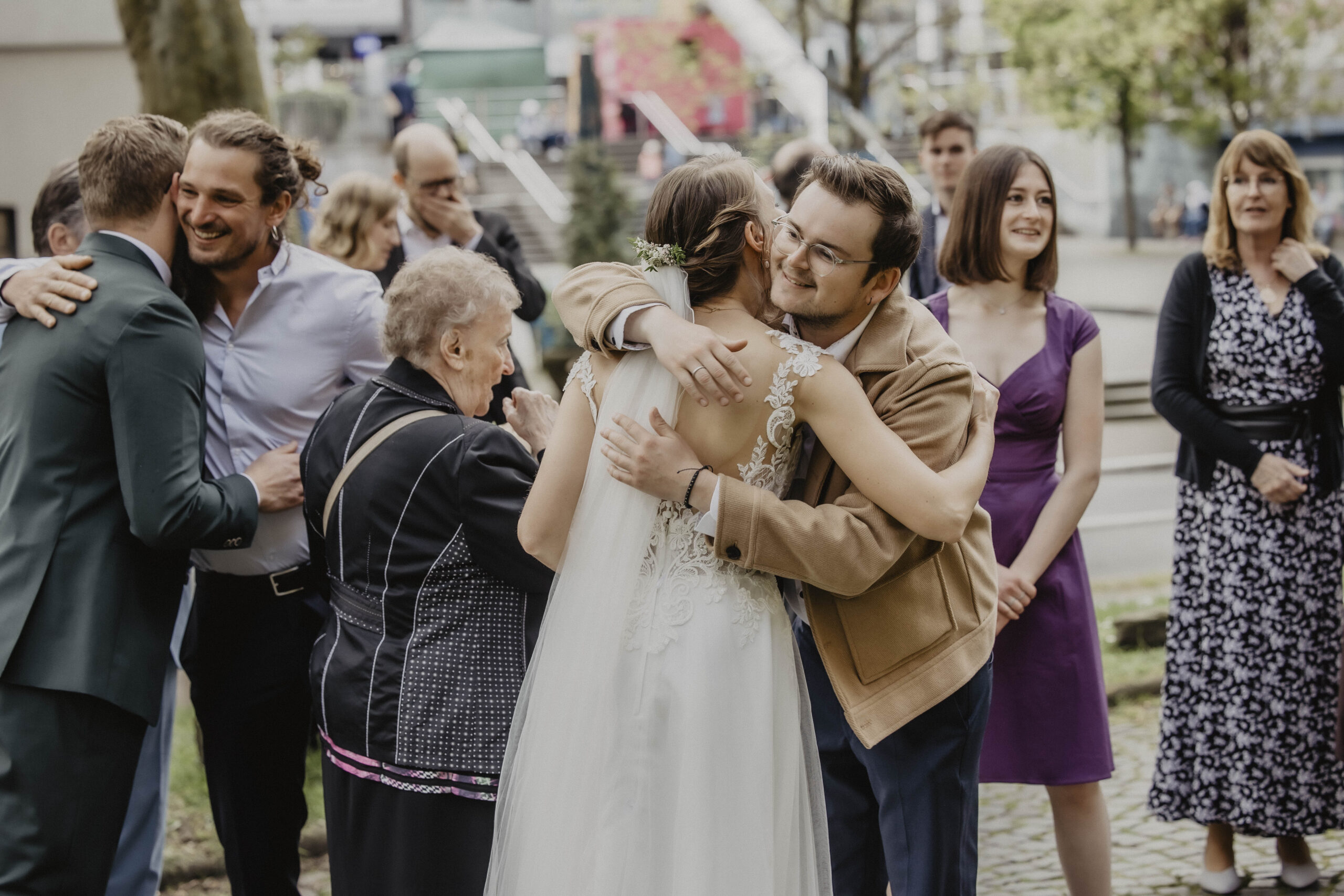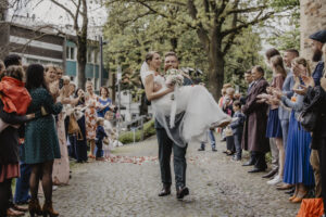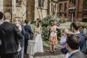 Eintreffen der Gäste, kirchliche Trauung und Glückwünsche!