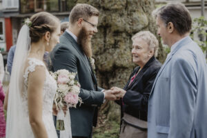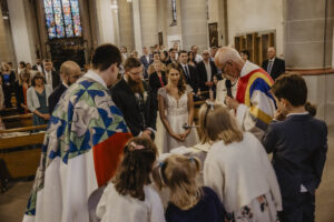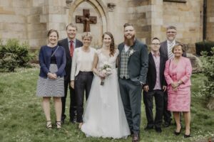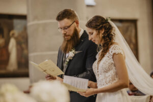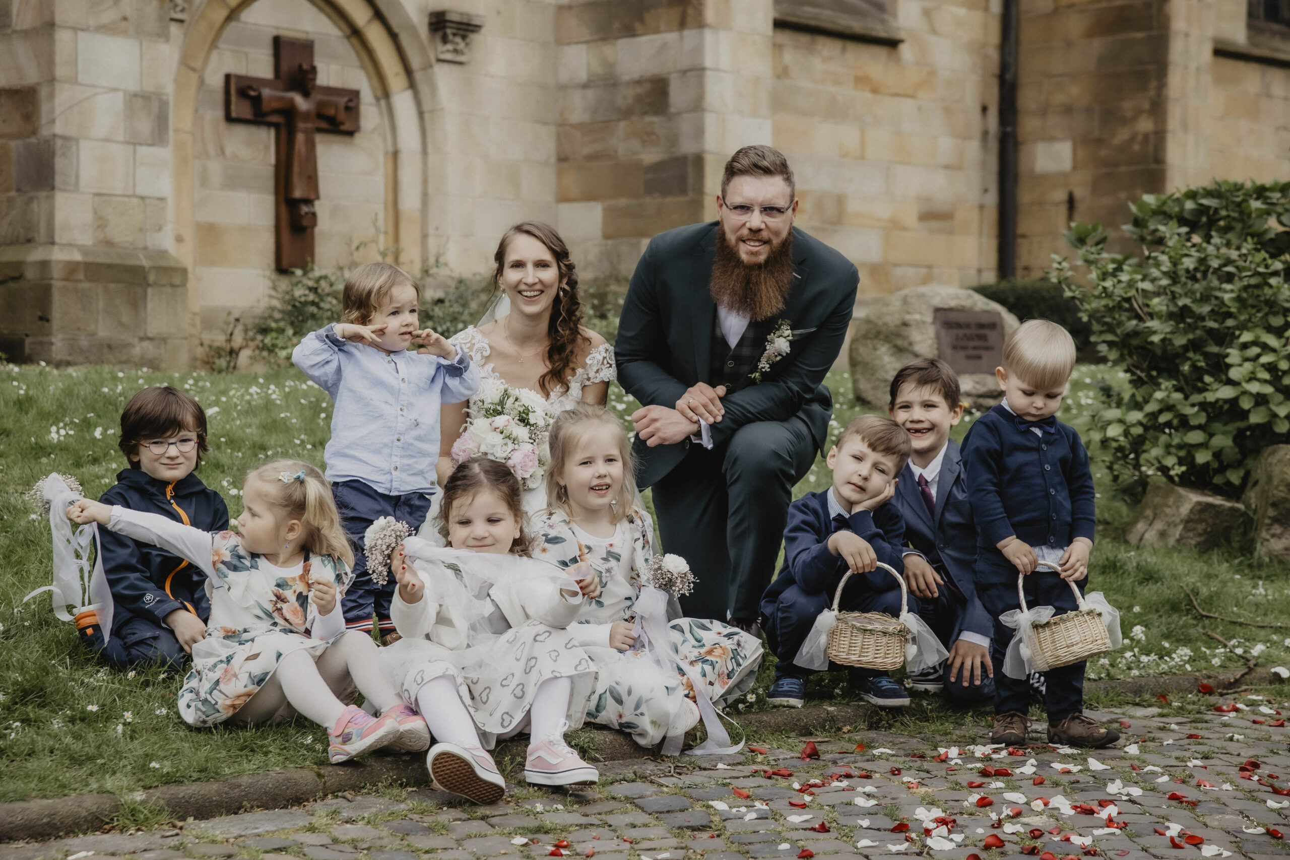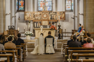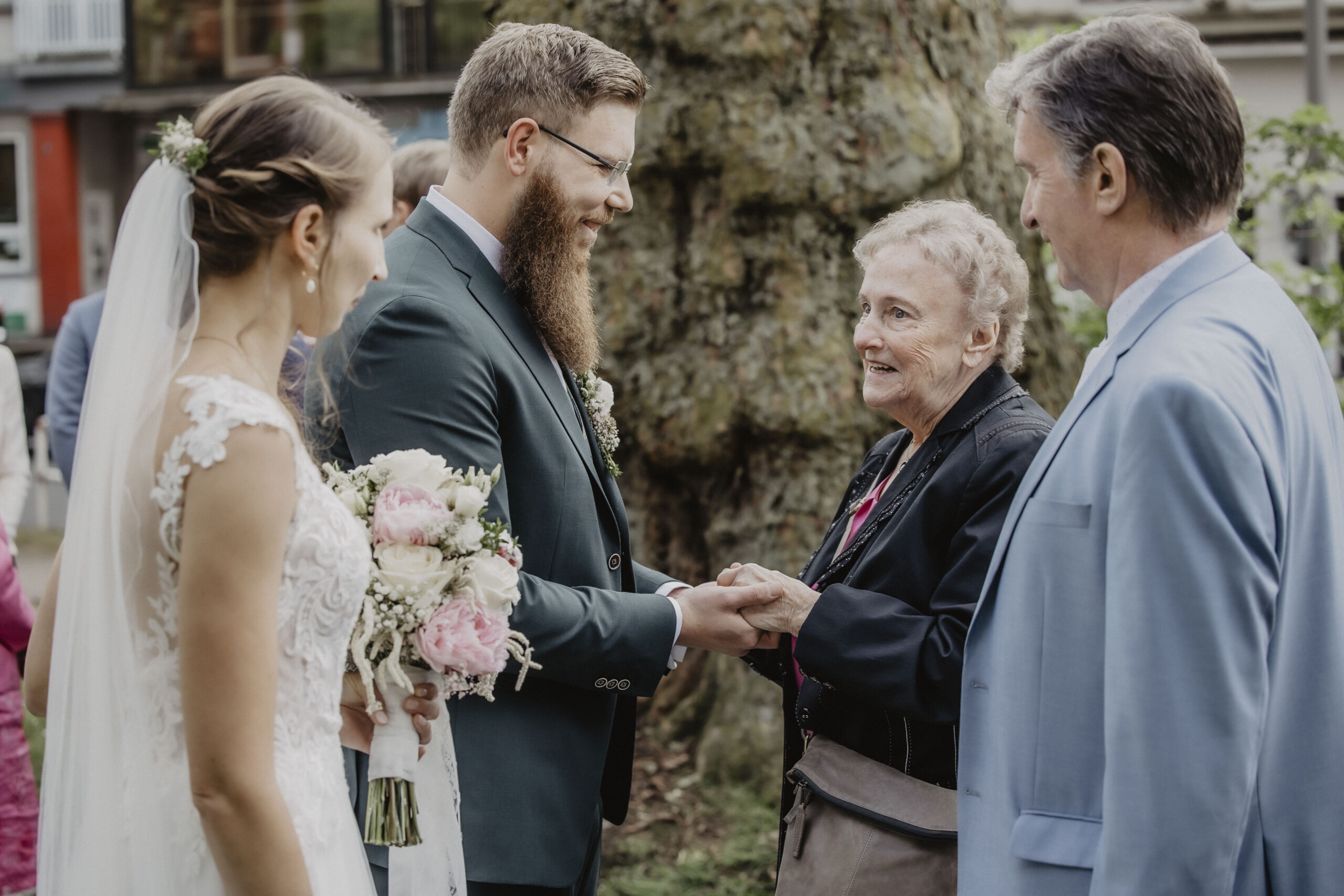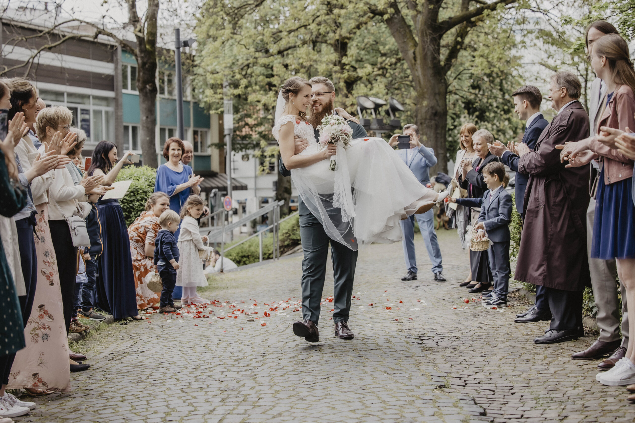 Eintreffen der Gäste, kirchliche Trauung und Glückwünsche!